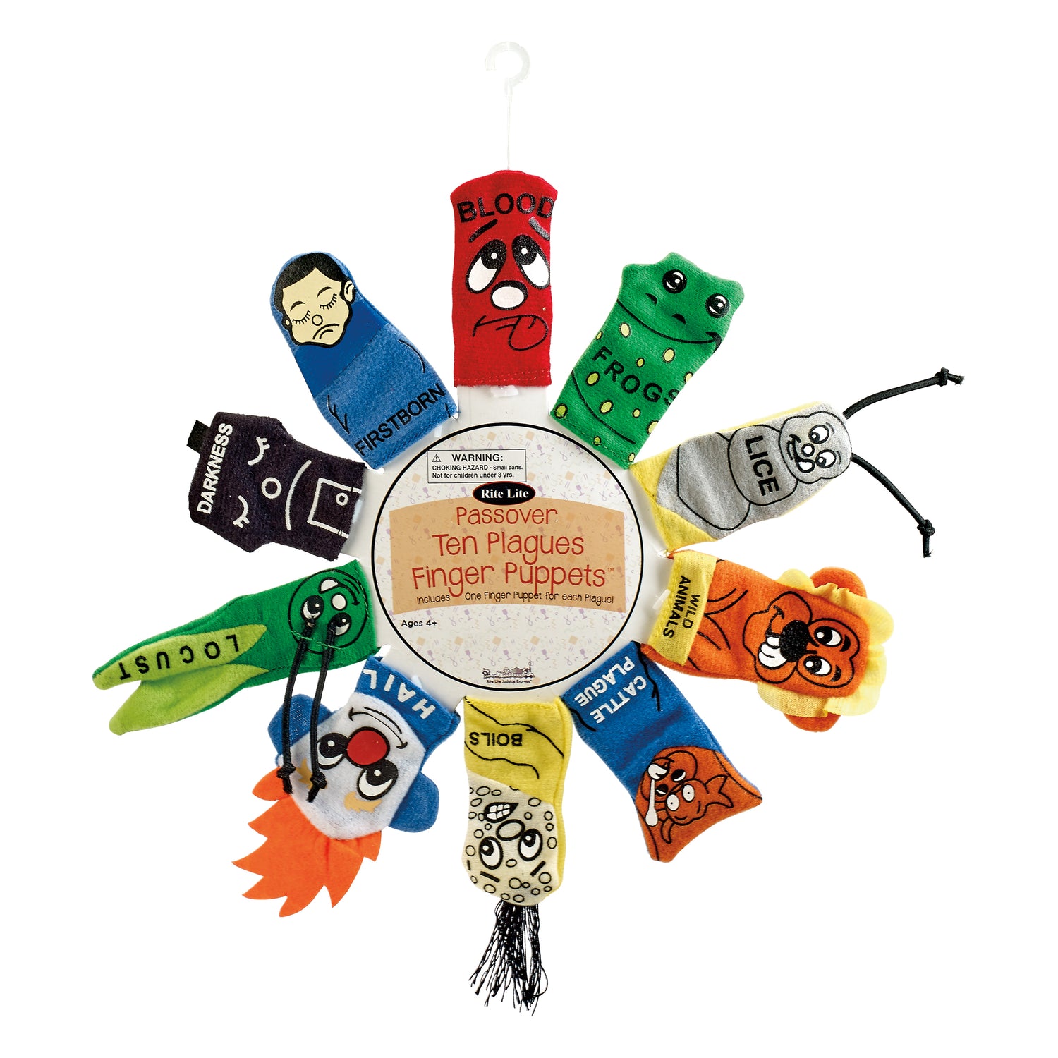 They got plagues, we got puppets! These 10 plague cloth finger puppets depict each of the 10 plagues in whimsical puppet form, and is great to teach and guide children in understanding the miracles of the Exodus.
