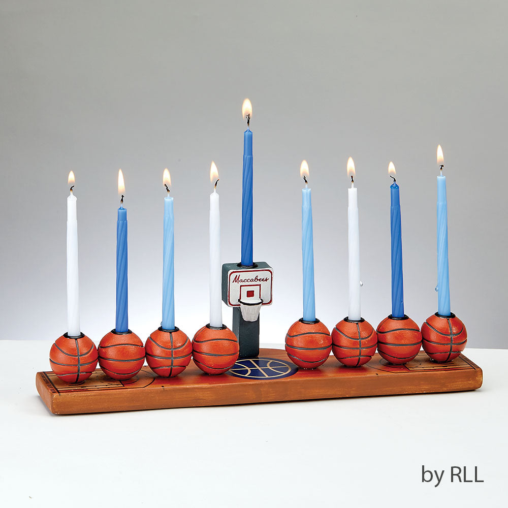 Gifting this menorah to your basketball fan is sure to win you a parenting "Slam Dunk"! Junior will go crazy over the eight basketball candle bases and hoop shamash holder.