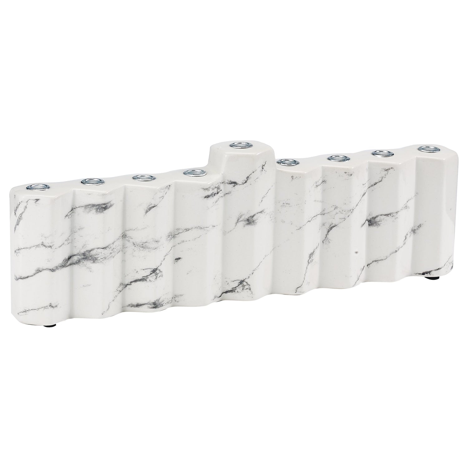 We found the menorah to complete your Hanukkah! This beauty has hexagon candle bases and that super trendy marble pattern you're seeing everywhere.