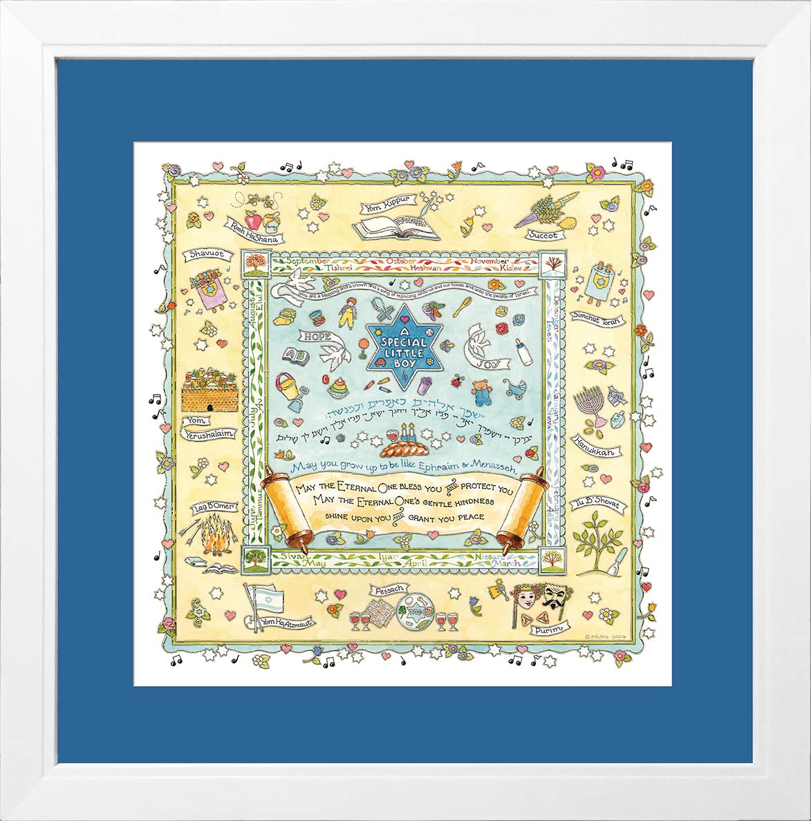 The Boy Blessing Jewish Year Art is a sweet & lively print that contains the traditional children's’ blessing recited by parents on Shabbat. The Jewish holidays surround the Hebrew months of the year and the corresponding English months. A lovely gift for a baby shower or to send to friends who have just welcomed a new baby into their lives.