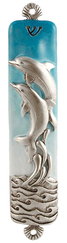 Marine lover? This mezuzah is perfect for you. The base is hand-painted in a sky blue and the bottom has handcrafted waves.