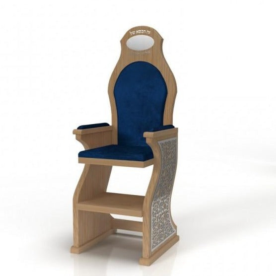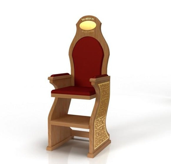 A verse about the angel of the brit milah is featured on the side of the chair.