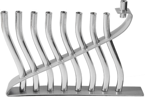 A menorah to satisfy the architecture lover in you! With eight multicolored tubes which come together to form a design reminiscent of a wave, and a shamash that is elevated, this lovely Menorah will add just the right amount of class and fun to your home!