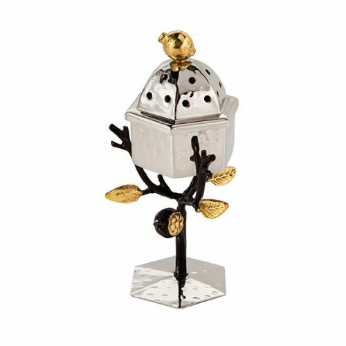What an elegant way to kick off your week! This beautiful spice box for havdalah has intricate pomegranate fruit at the top, and leaves and branches as the stem of the box which contribute to its delicate look.