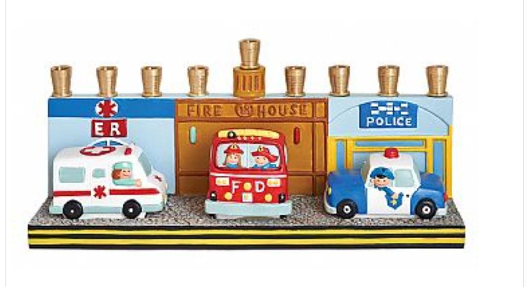 Your cutie can learn about first responders and the important service they do while fulfilling a mitzvah at the same time with this super cute menorah. The details of each emergency vehicle and the adorable figures inside is sure to make your child squeal with delight!