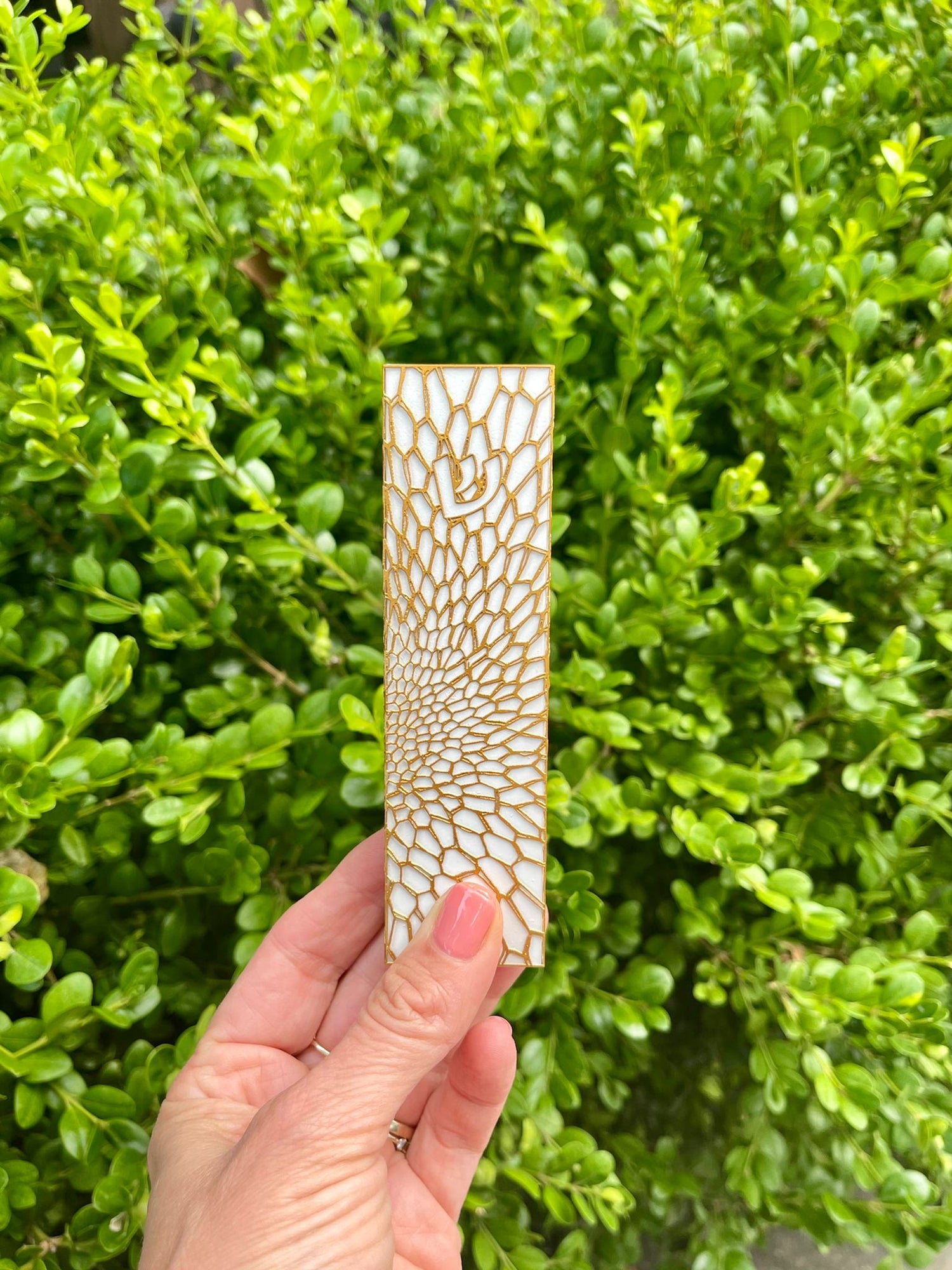 This mezuzah cover is covered with an elegant gold lace design. You will love displaying this chic mezuzah cover on your door.