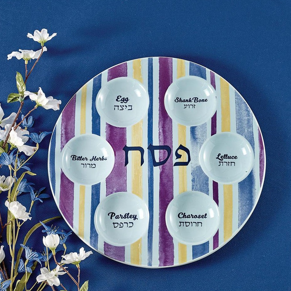 Adorn your table with this pretty and modern seder plate. It will be the perfect masterpiece for the seder! This plate is made of ceramic and has a pattern reminiscent of Joseph's coat, which lends it a historical feel as well.