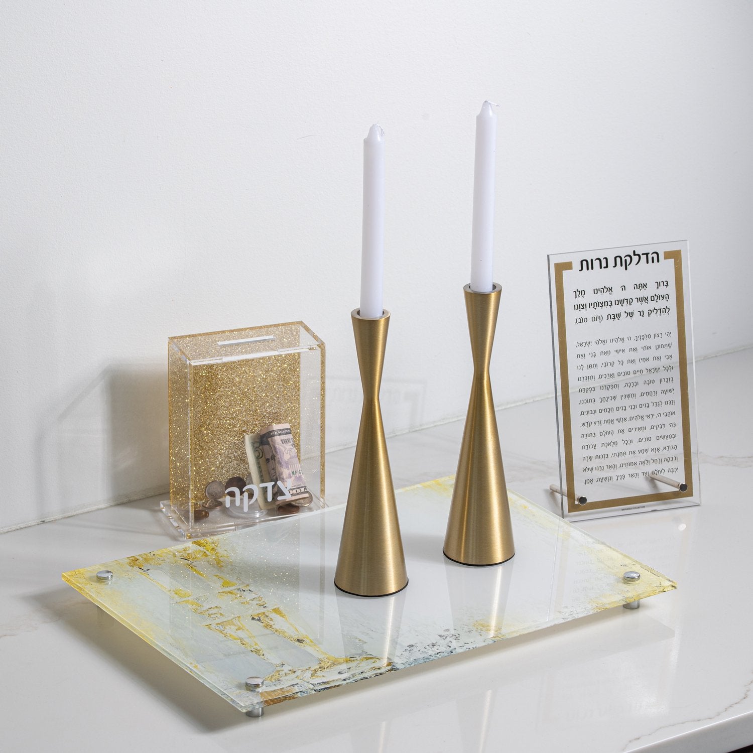 This luxe painted tray is a gorgeous must-have to put under your Shabbat candles!! Both practical and beautiful, this tray would make a great gift.