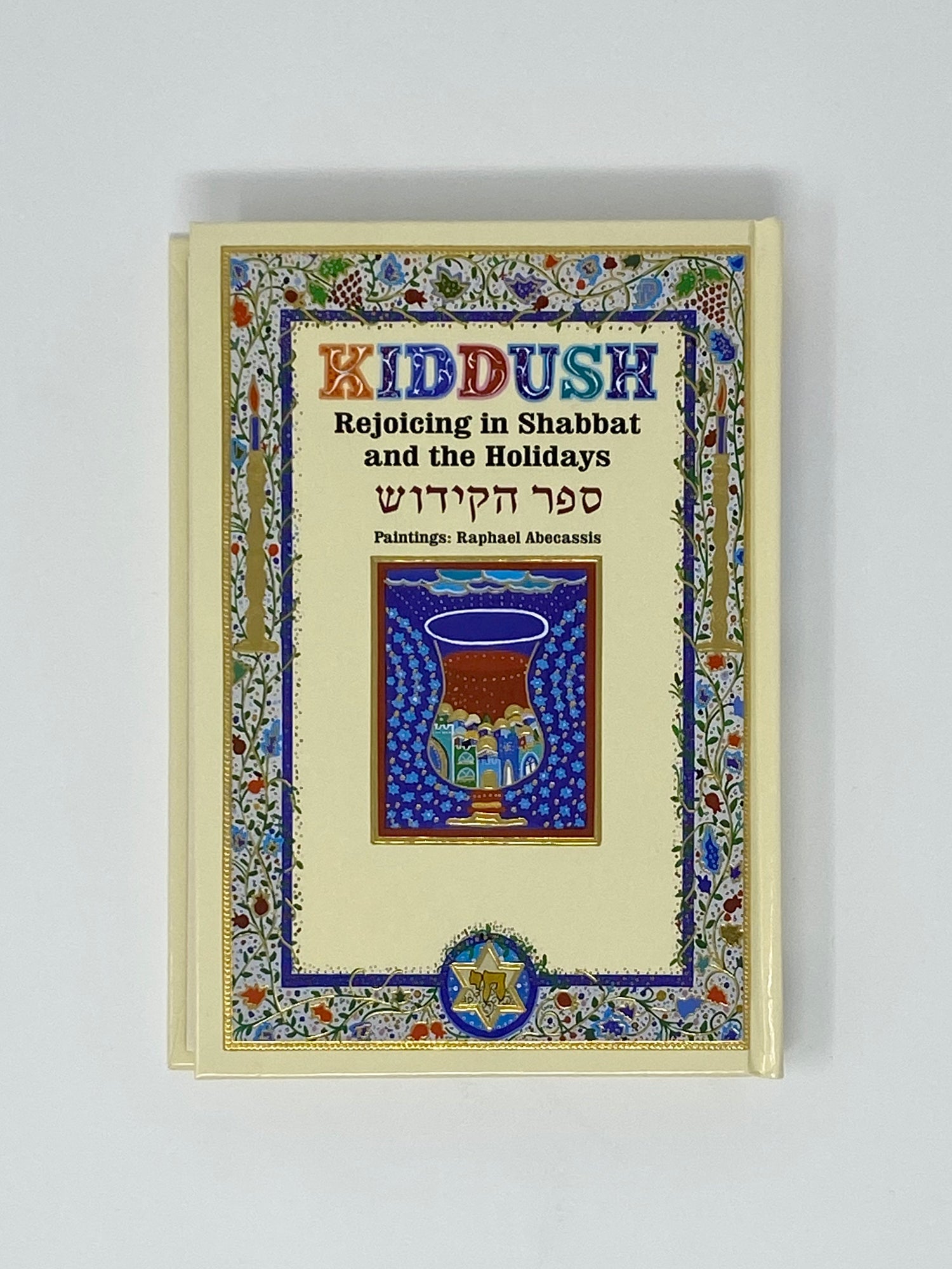 Sefer Hakiddush is a unique handbook for Jewish home religious observances. It contains blessings, table ceremonies, and songs used in the Jewish home throughout the year, arranged in a logical order and with explanations. It contains all of the different versions of Kiddush recited on each festival of the year (with a separate page for the Kiddush for each holiday), as well as all of the prayers, blessings, and zemirot used on Shabbat in the home, and home ceremonies for the various holidays and life-cycle events. It is beautifully illustrated by the renowned Israeli artist Raphael Abecassis.