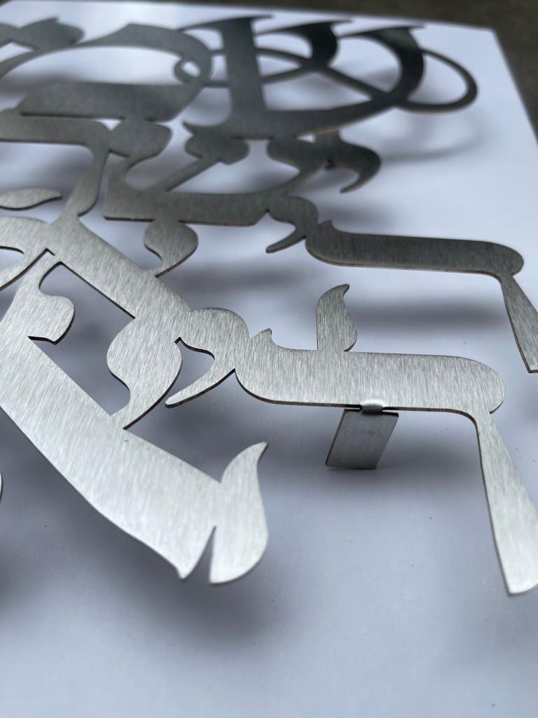 A deeply meaningful and beautiful piece of art to hang on your wall! This artwork features the famous words of the Shema Yisrael prayer in a brushed chrome finish and a clean modern design.