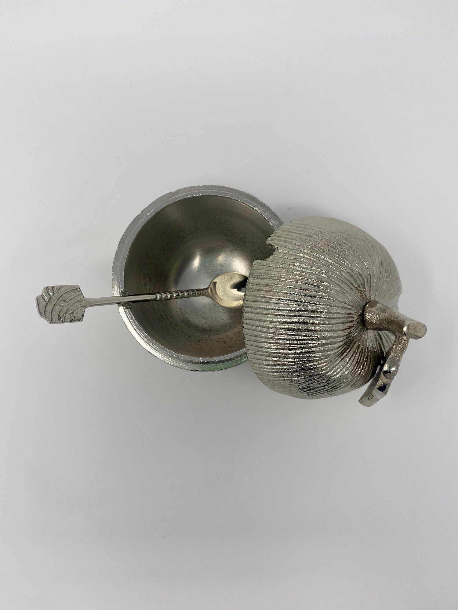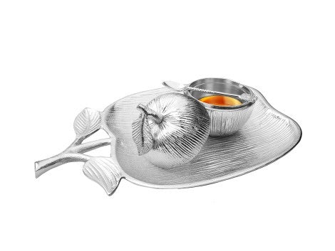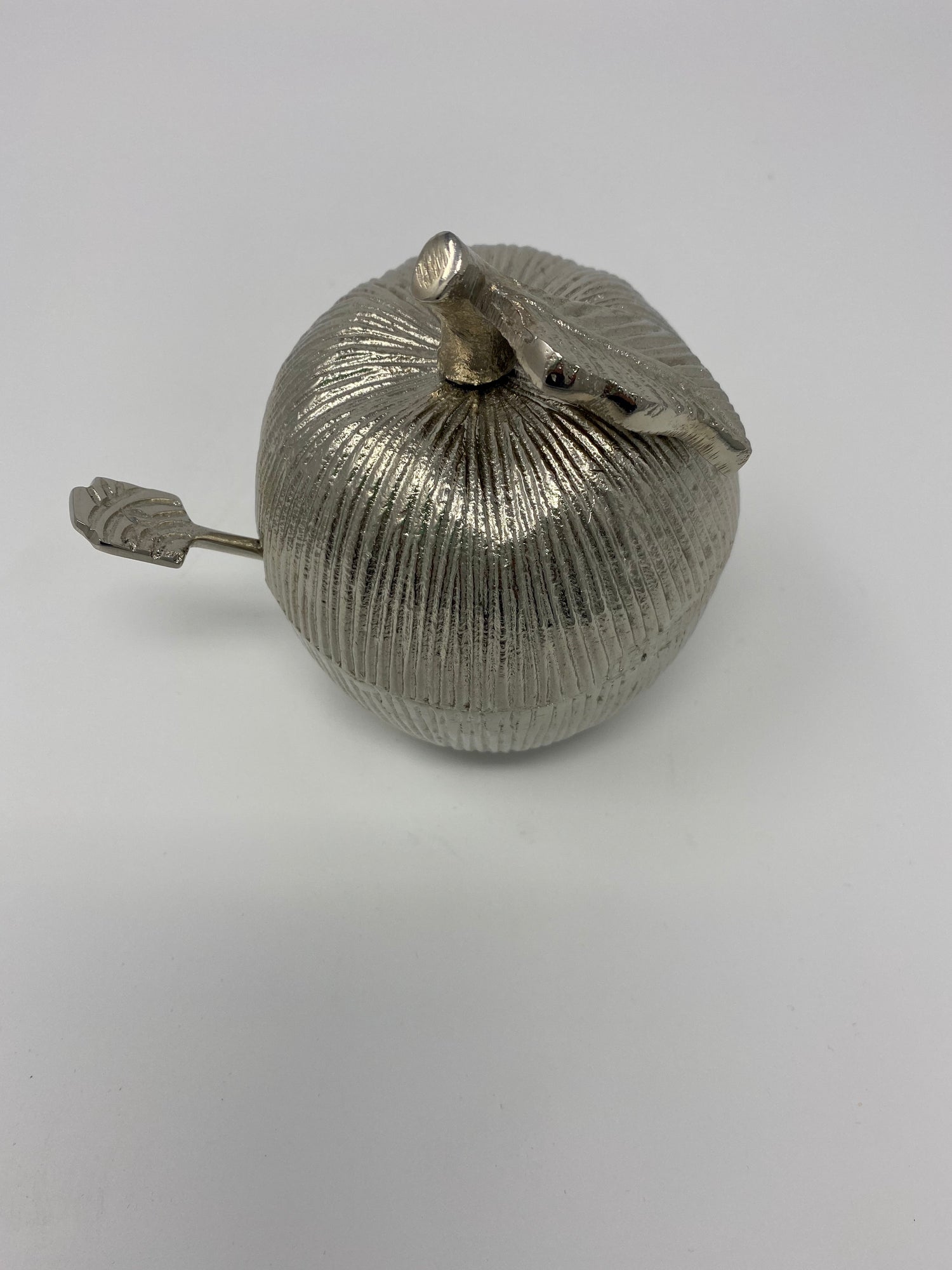 Silver Apple Shaped Dish with Removable Honey Jar and Spoon [Large]
