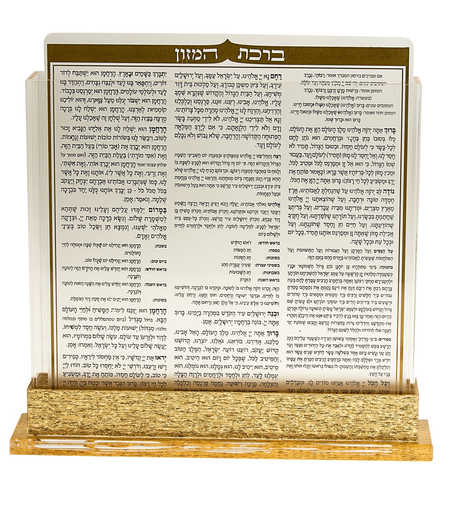 This Lucite bentcher holder is a beautiful way to display and keep your bentchers organized. It comes with 8 clearly printed bentchers with silver borders which complement the silver on the holder.