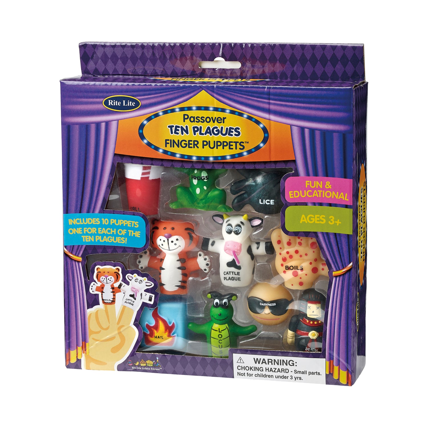 Meet the cutest 10 plague finger puppets ever! Each detailed finger puppet represents one plague, making it fun for kids imaginations to burst with Passover creativity both during the Seder and all Passover long.