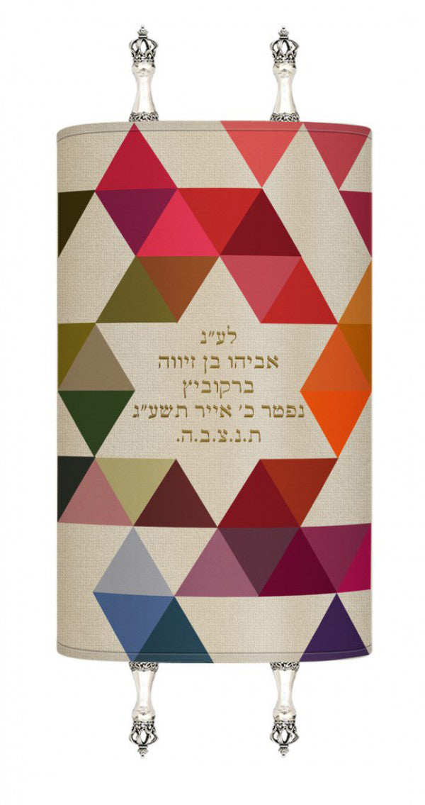 This bold and colorful magen david design for this Torah mantel gives it a cohesive and modern look.
