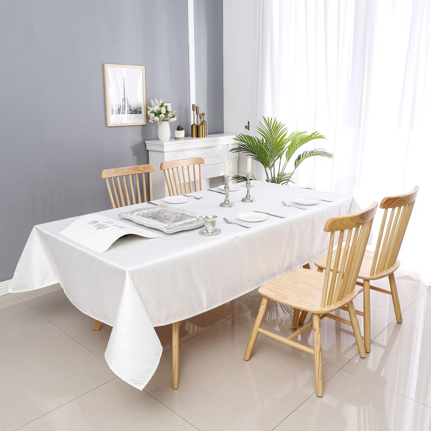 White Slate Jacquard Tablecloth #1345