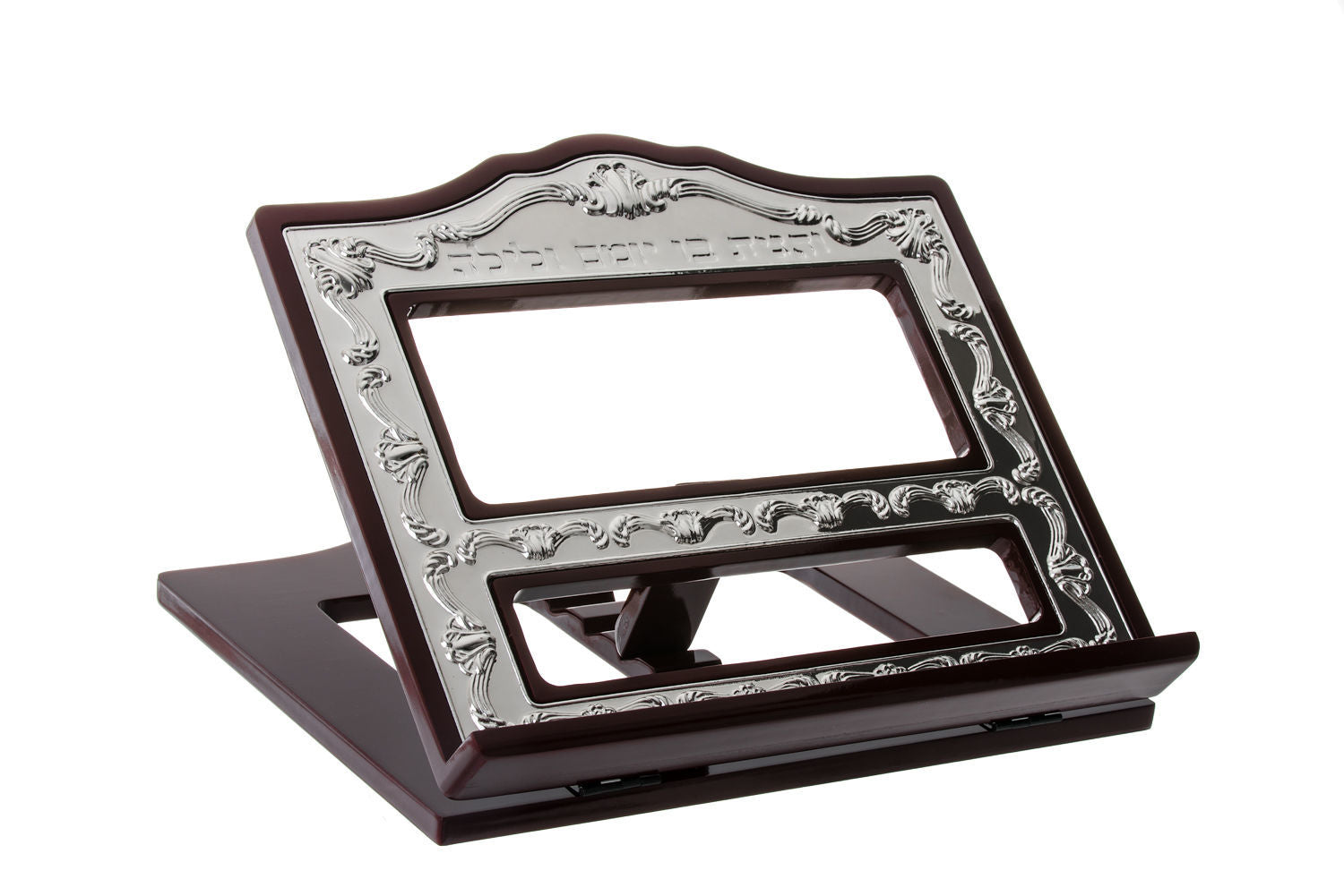 A supportive and beautiful tool to help you study Torah at home or in synagogue, this shtender is the perfect way to prop up your sefer of choice. This shtender is made of dark wood with the sides covered in silver strips and has adjustable positions. The words "And you shall pore over it day and night" in Hebrew serve as a reminder of the preciousness of Torah study.
